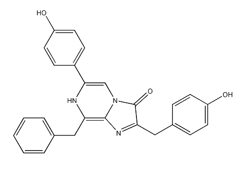 Coelenterazine,在水生生物中(例如海腎、海蜇、水螅等)發(fā)現(xiàn)的天然腔腸素可作為很多熒光素酶(包括海腎熒光素酶Rluc)的作用底物,可用于活細(xì)胞中鈣離子濃度檢測(cè)、報(bào)告基因分析、BRET(生物發(fā)光共振能量轉(zhuǎn)移)研究、ELISA、HTS、組織或細(xì)胞中超氧陰離子和過亞硝酸鹽的化學(xué)發(fā)光檢測(cè)。