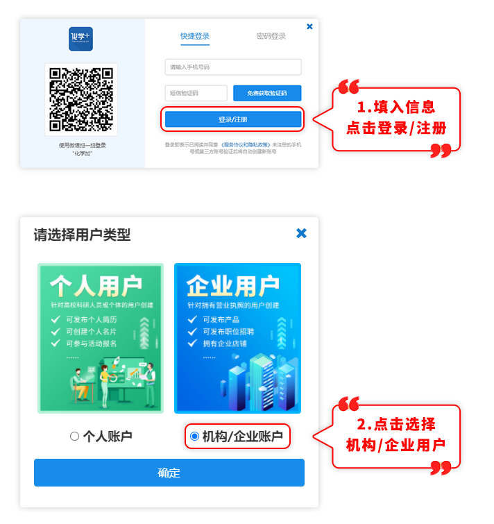 若尚未有化學(xué)加網(wǎng)賬號的用戶請先前往注冊企業(yè)用戶,已有賬號的用戶直接前往登錄即可。