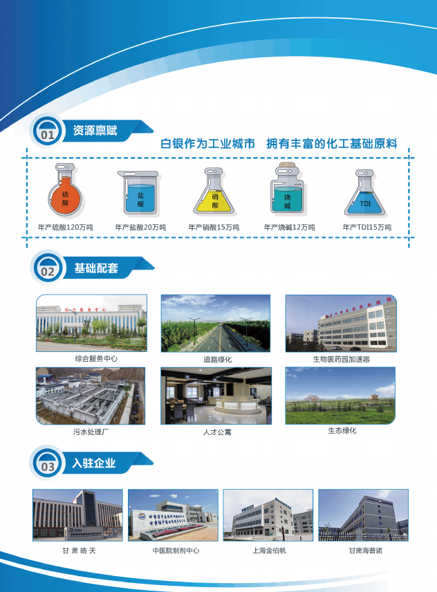 銀西生物醫藥園是蘭白國家自主創新示范區建設的重要支撐,是白銀市委、市政府“兩區四基地”建設的重要組成部分。總規劃面積6061畝,以醫藥中間體和原料藥為重點突破方向,以制劑為前導方向,以中藥材和中藥、生物技術藥、醫療器械、藥用輔料為輔助方向。目前已入駐甘肅皓天、 甘肅海普諾藥業、上海金伯帆等企業。
